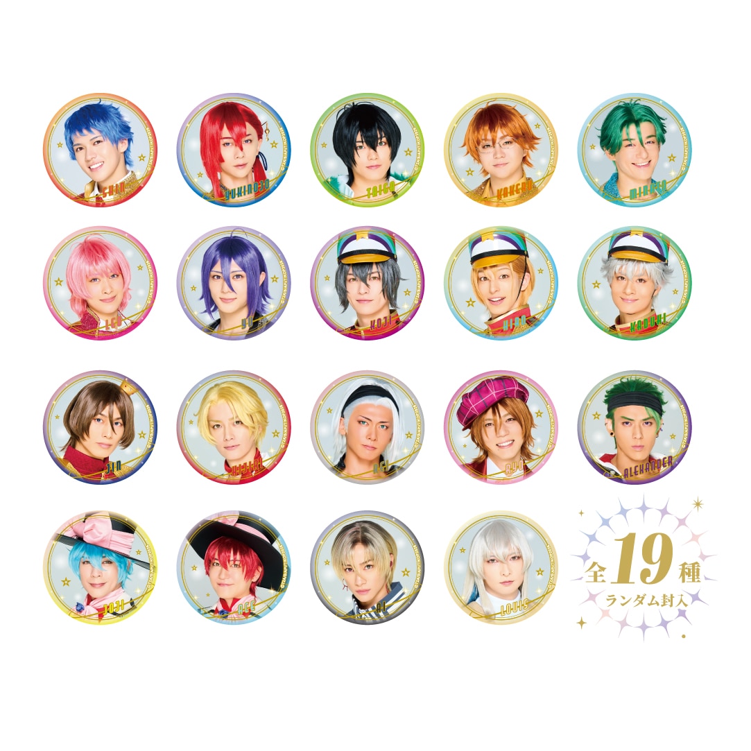 ランダム缶バッジ500円(税込)ランダム缶バッジ出演キャスト19名のショットを使用した、キラキラデザインの缶バッジ。