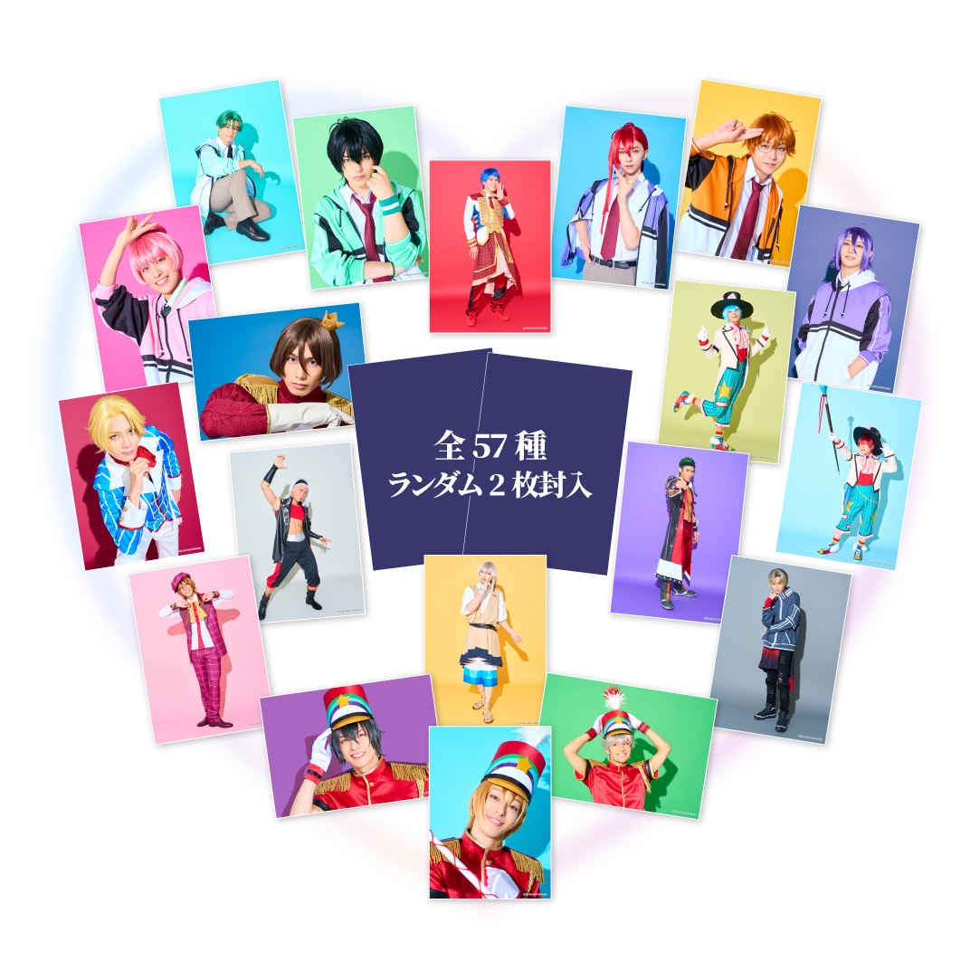 ランダムブロマイド400円(税込)ランダムブロマイド出演キャスト19名それぞれのキャラカラーを使用したブロマイド。