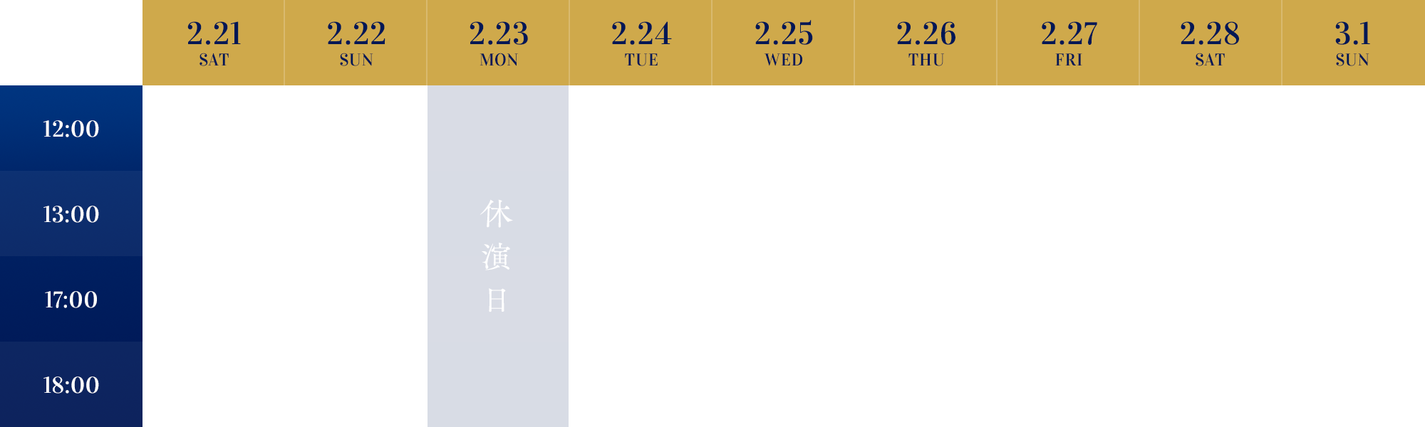 ※出演者および公演スケジュールは予告なく変更になる場合がございます。